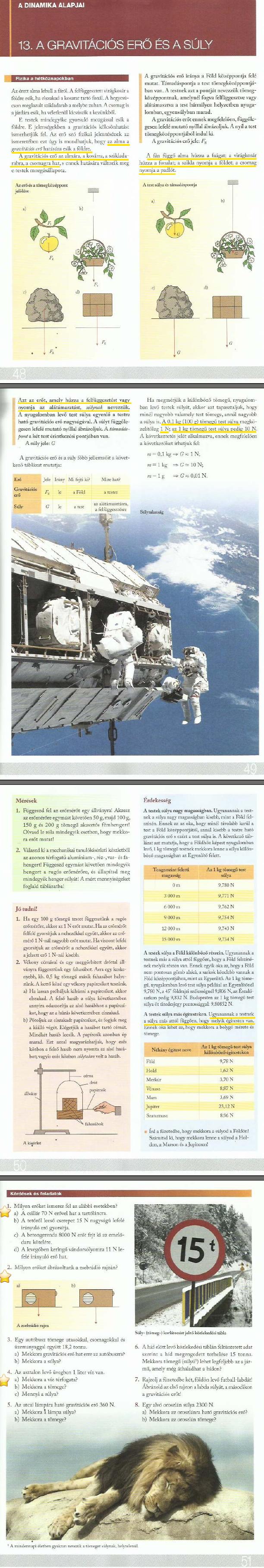 26. óra: 13. A gravitációs erő és a súly