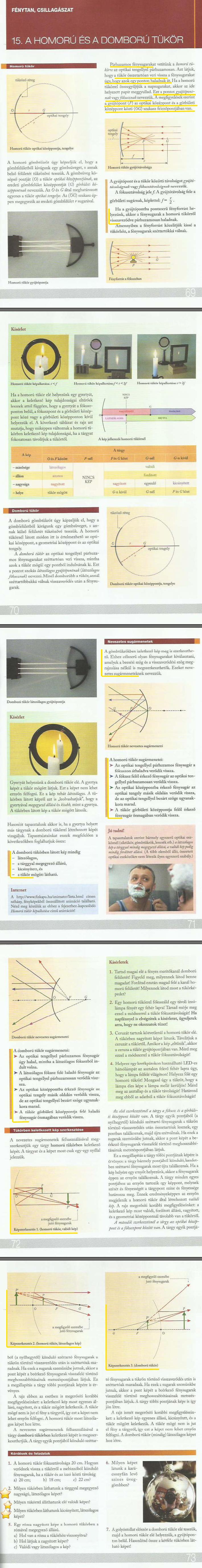 29. óra: 15. A homorú és domború tükör