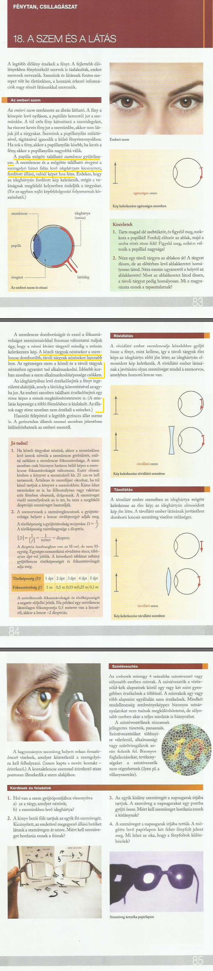 32. óra: 18. A szem és a látás