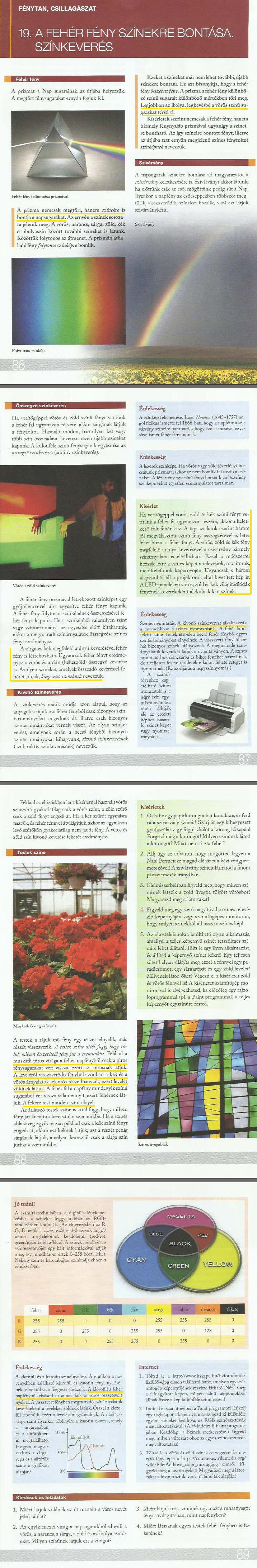 33. óra: 19. A fehér fény színekre bontása, színkeverés