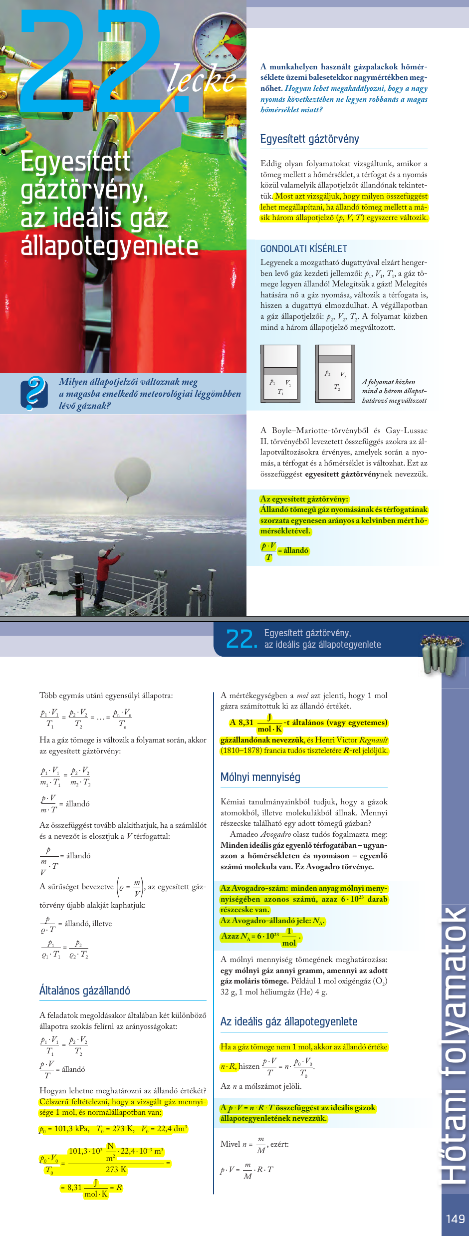43. óra: 22. Egyesített gáztörvény, az ideális gáz állapotegyenlete