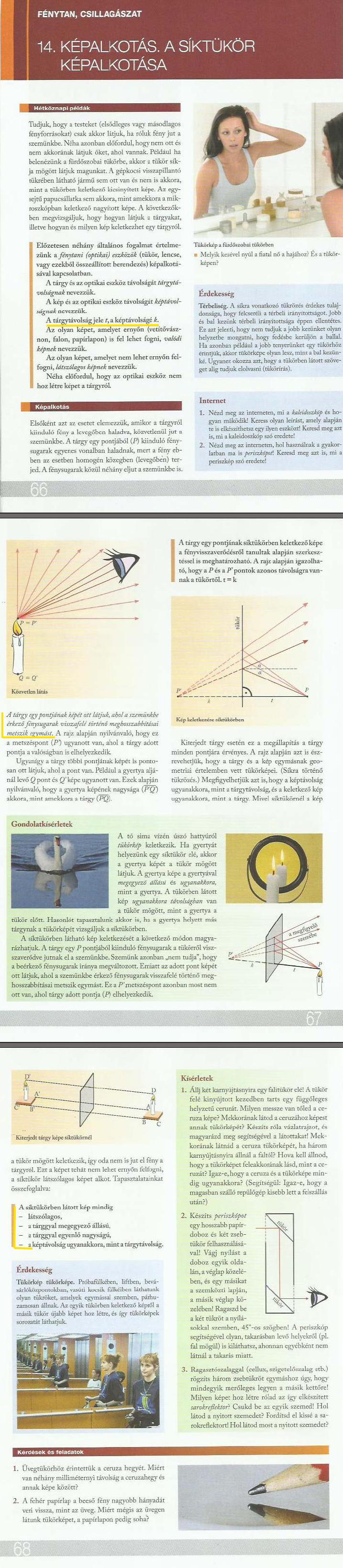 56. óra: Gyakorlás: síktükör képalkotása